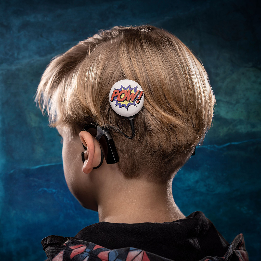 Dekoration för CI. Fästes på spolen med kardborreband, 3st kardborreband medföljer i beställningen. Formen på kardborrebandet som ska fästas beror på ytan på din spole. Den rektangulära passar till Cochlear Nucleus 5 och 6 och den runda till Nucleus 7. Storleken rektangulära: 10 mm x 19 mm. Diametern rund: 19 mm.